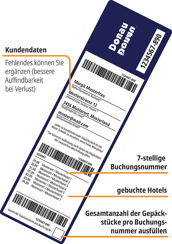 - 7-stellige Buchungsnummer: Dient der eindeutigen Zuordnung Ihres Gepäcks zu Ihrer gebuchten Reise.