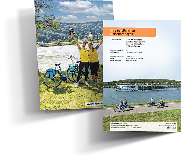Ihre persönlichen Reiseunterlagen erhalten Sie bereits 21 Tage vor Anreise bequem per E-Mail. Zusätzlich liegt bei Ihrer Ankunft im Starthotel ein gedrucktes Exemplar für Sie beim Check-in bereit.