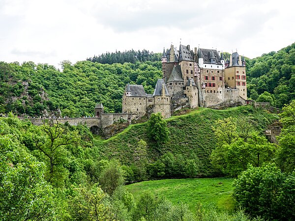 Die Burg Eltz zählt zu den bekanntesten Sehenswürdigkeiten entlang der Mosel und gehört zu den schönsten Burgen Deutschlands. Die imposante Höhenburg aus dem 12. Jahrhundert liegt malerisch eingebettet in eine waldreiche Landschaft. Nach einem kurzen Aufstieg über Stufen und Wege erreichen Besucher diese beeindruckende Anlage. Im Inneren erwartet Sie eine einzigartige Schatzkammer mit historischen Möbeln, Schmuck und Kunstwerken. Die Burg vermittelt einen authentischen Einblick in vergangene Jahrhunderte. Auch das Burgrestaurant lädt zu einer genussvollen Pause ein. Ein Highlight für jede Radreise entlang der Mosel.